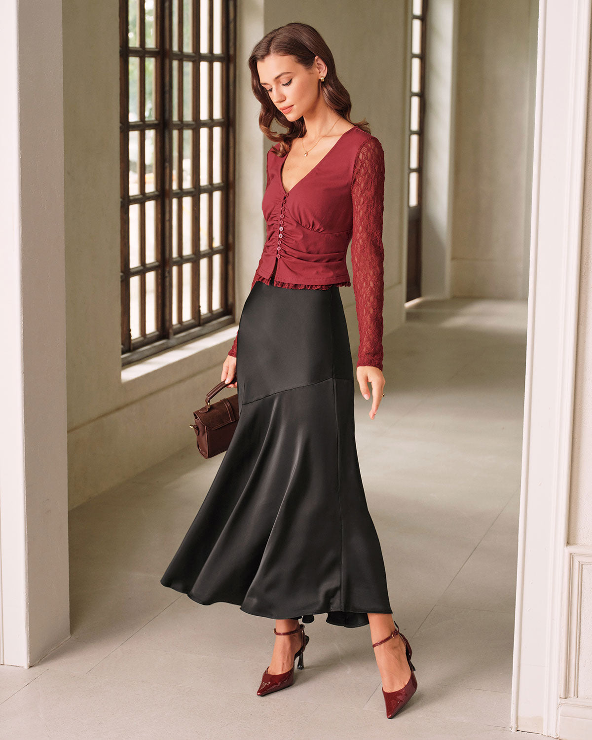 Red V Neck Button Cardigan