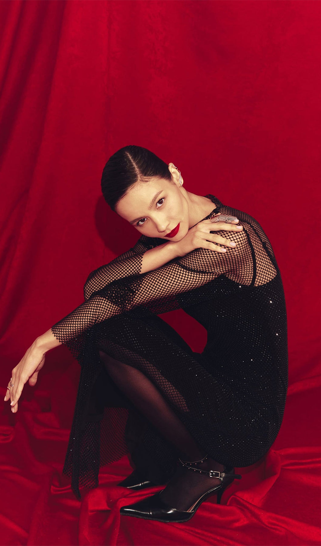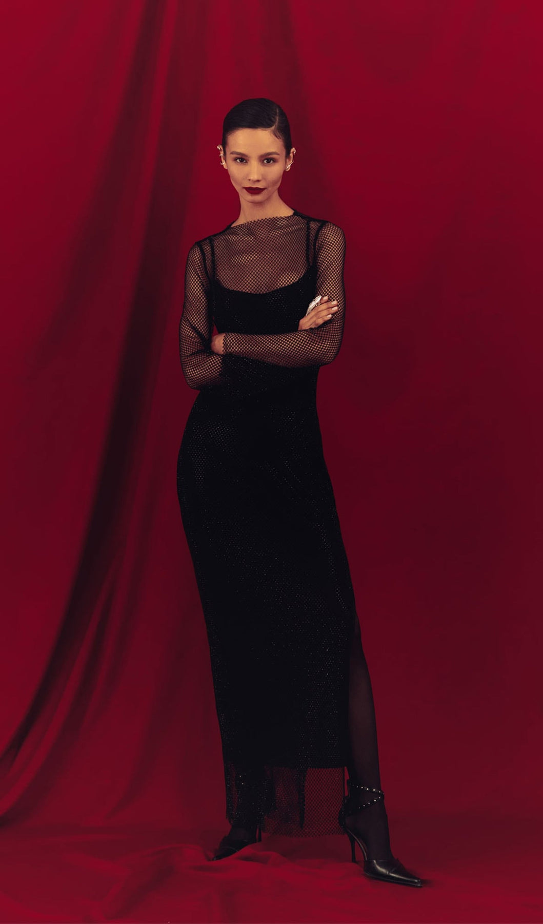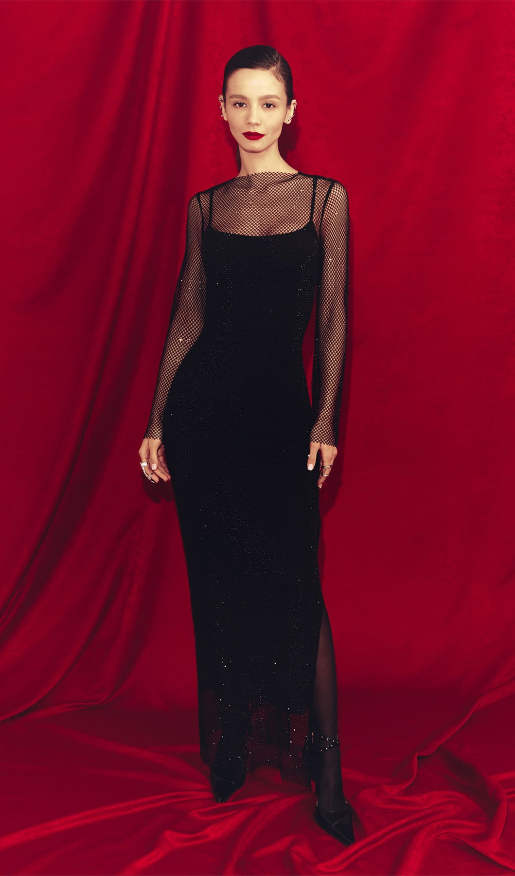 Mesh With Monochrome Lining  Maxi Dress