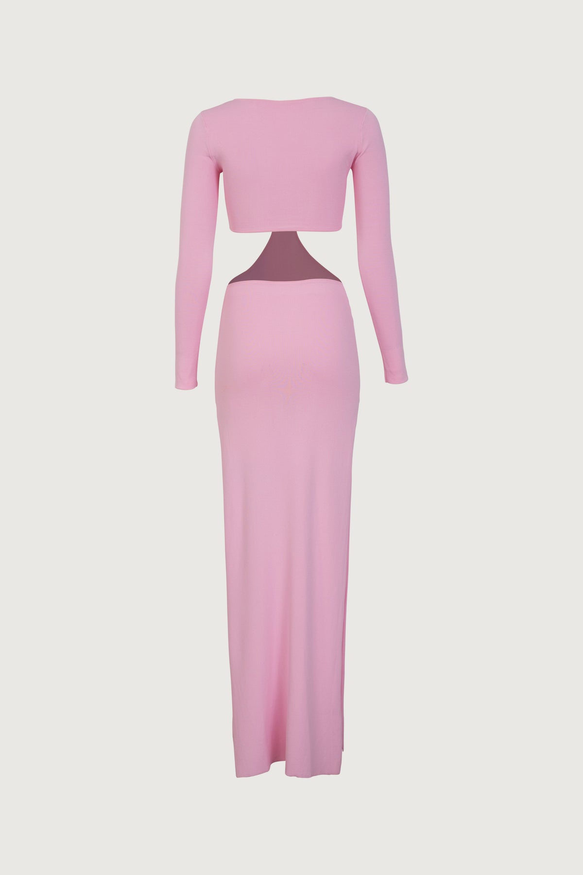 Long Sleeve Cut Out Maxi Dress (Baby Pink) - Celestial Couture