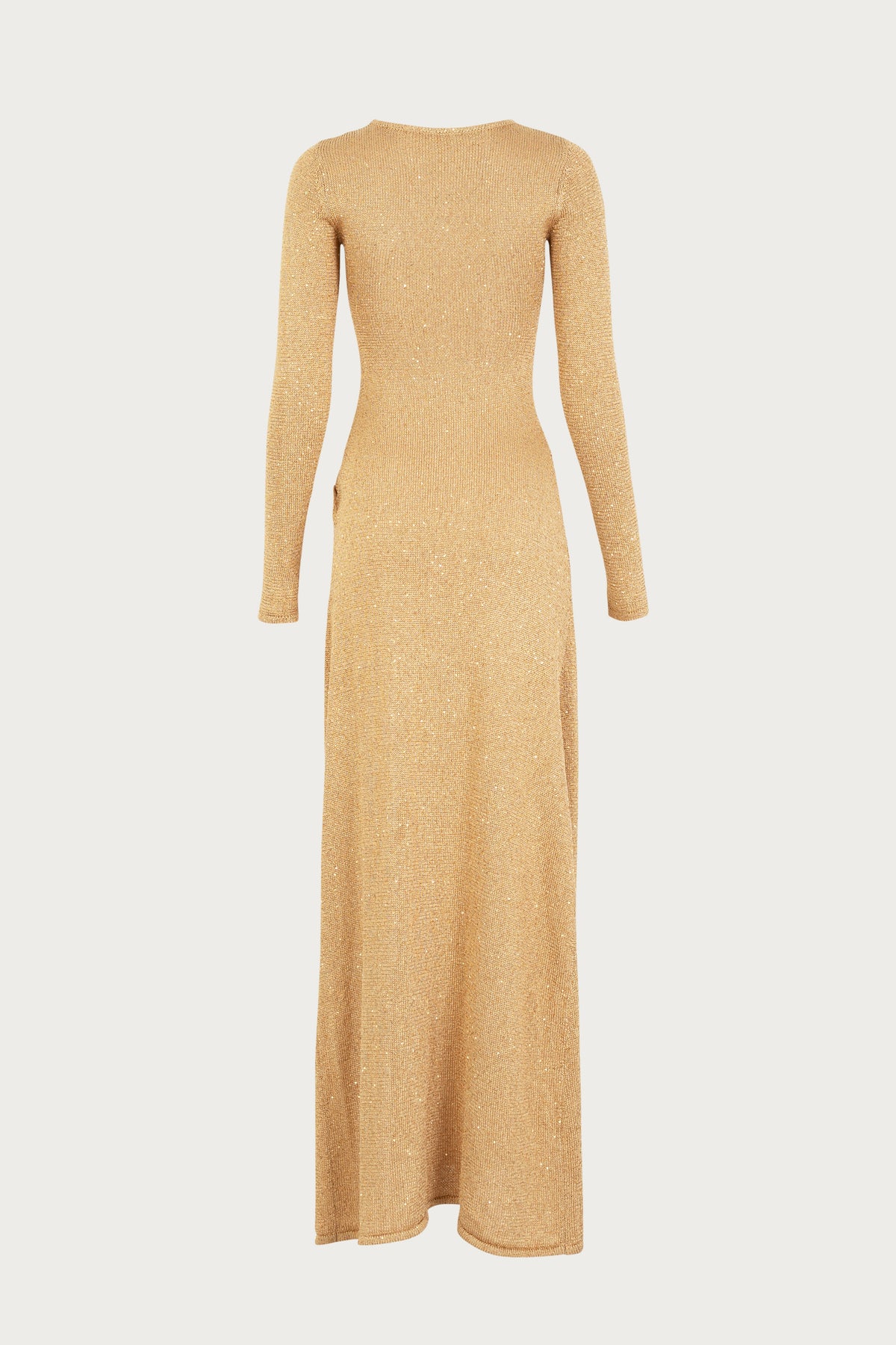 Long Sleeve Twist Dress (Gold Sequin) - Celestial Couture