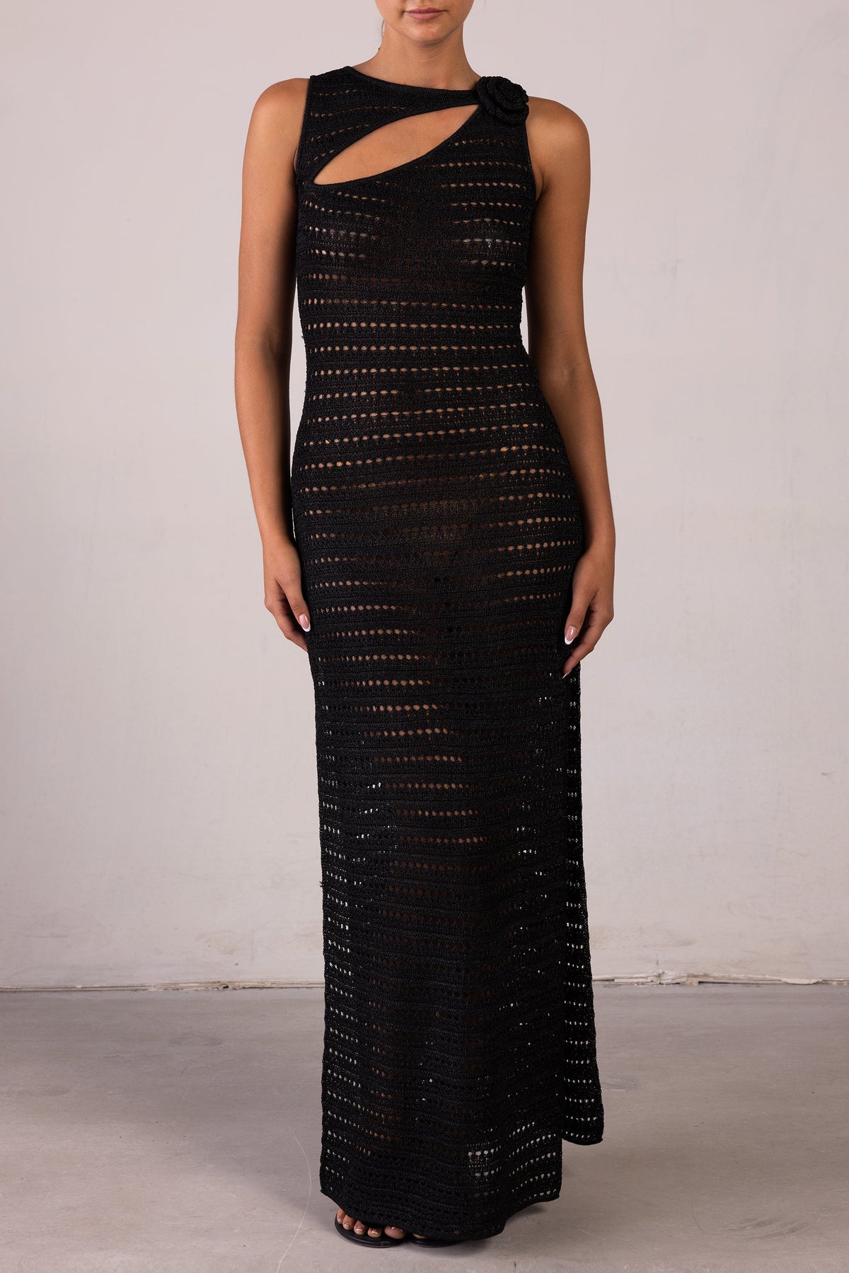Rosette Sleeveless Crochet Dress (Black) - Celestial Couture