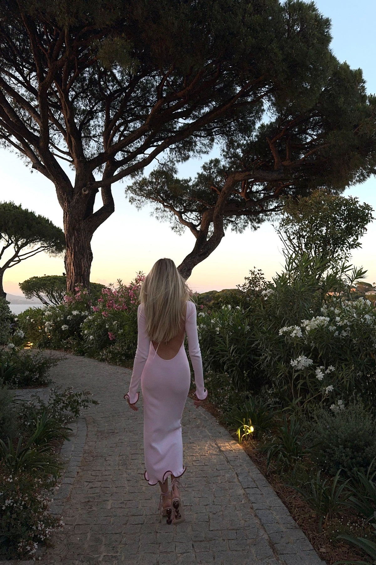 Ruffle Hem Midi Dress (Baby Pink) - Celestial Couture
