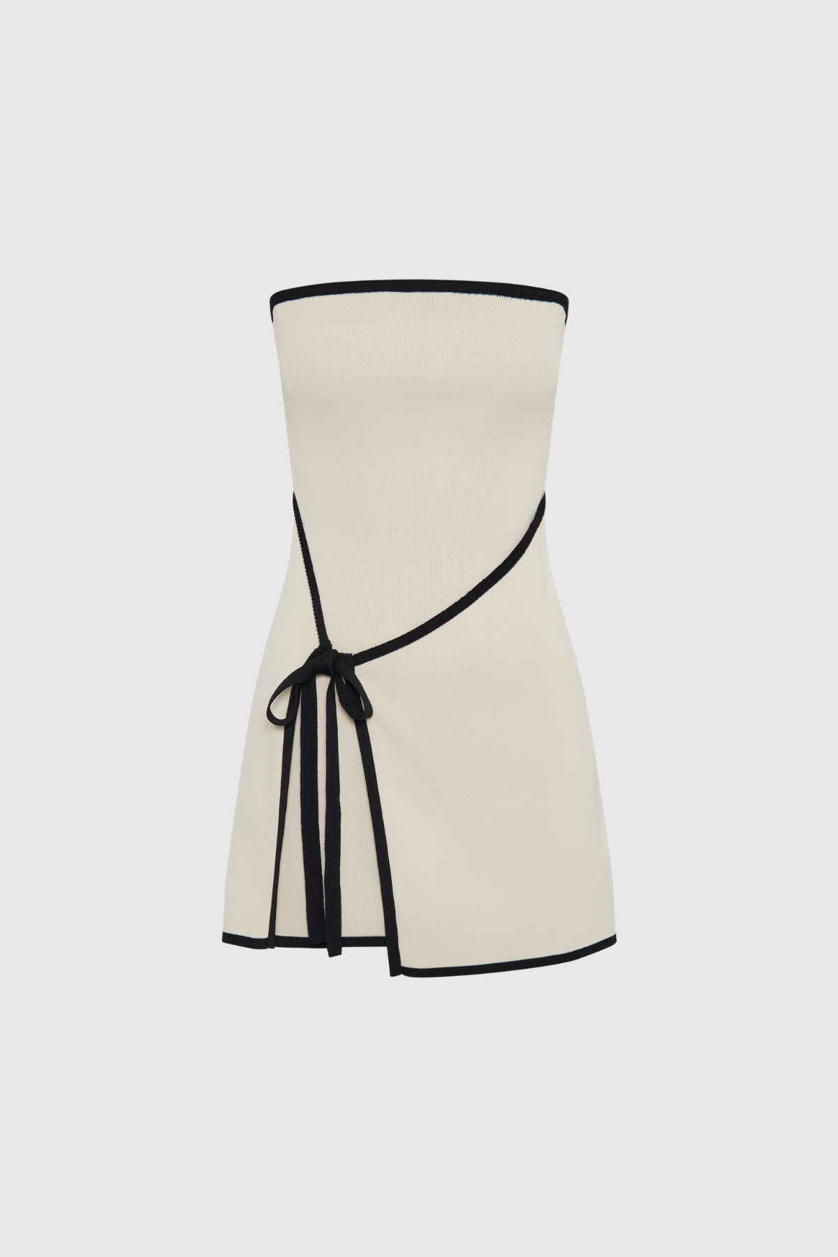 Ainsley Strapless Lace Up Knit Mini Dress In White