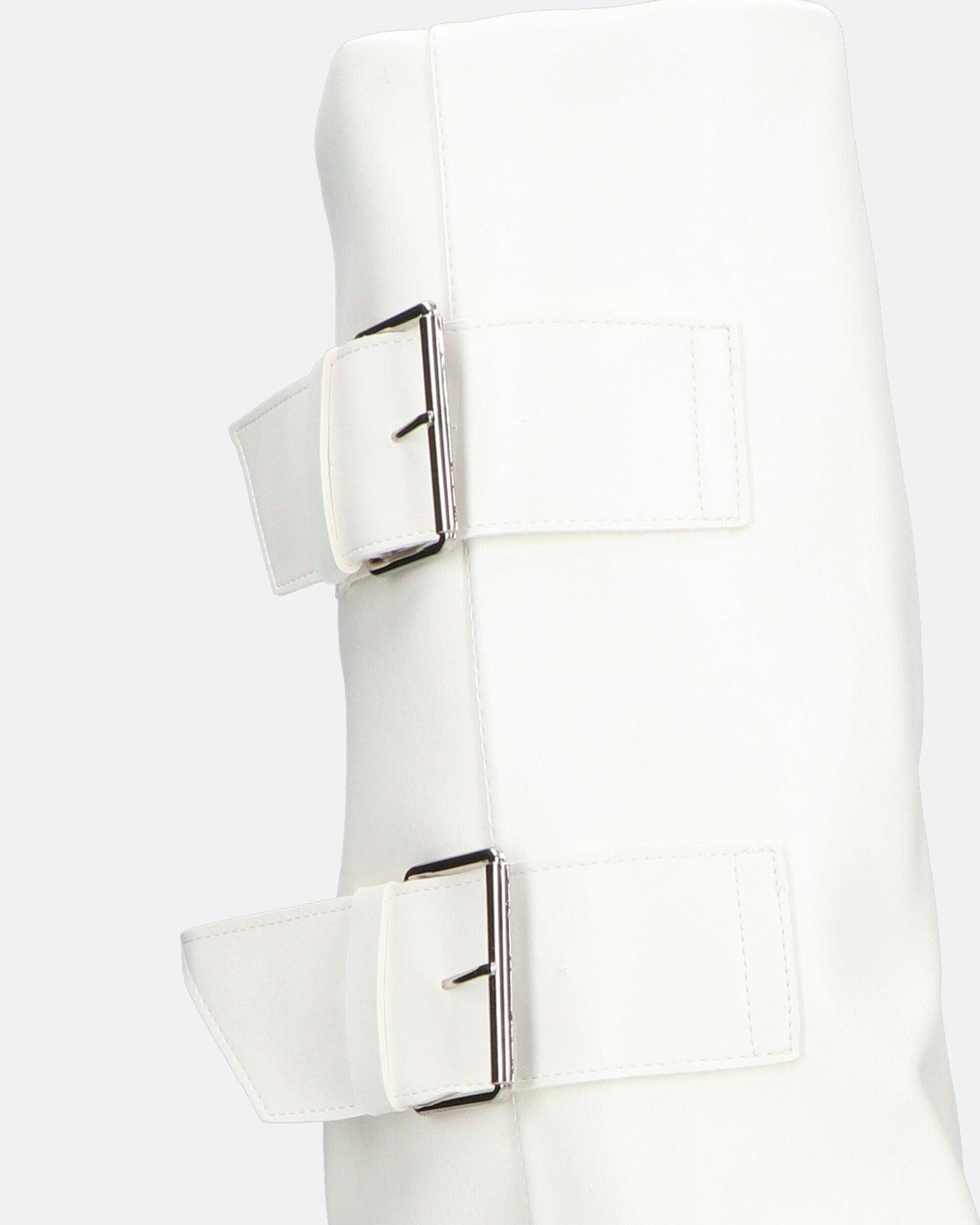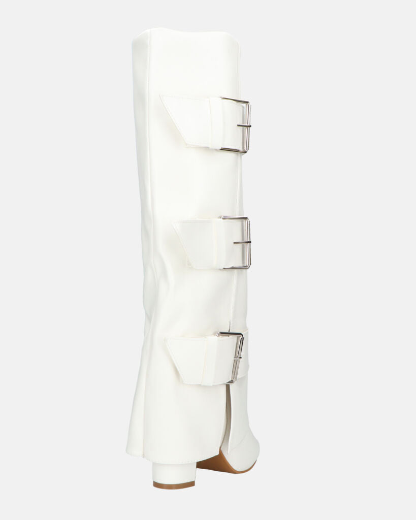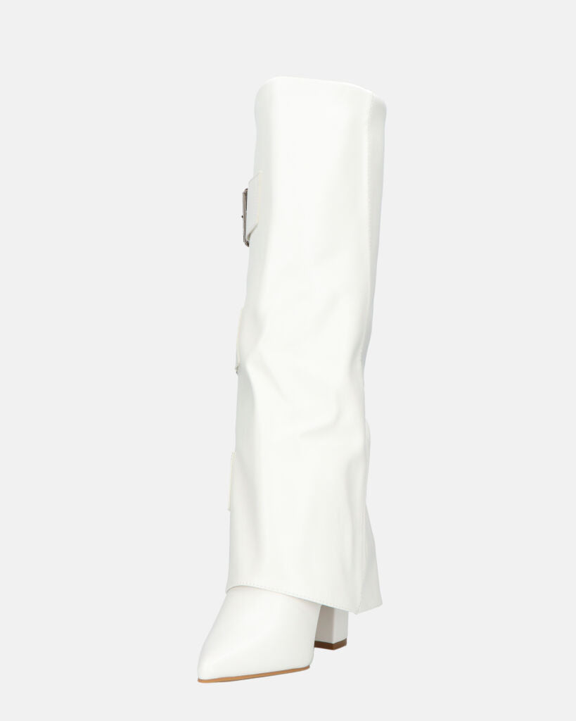 ISABELL - stivali alti bianchi con risvolto e cinture laterali