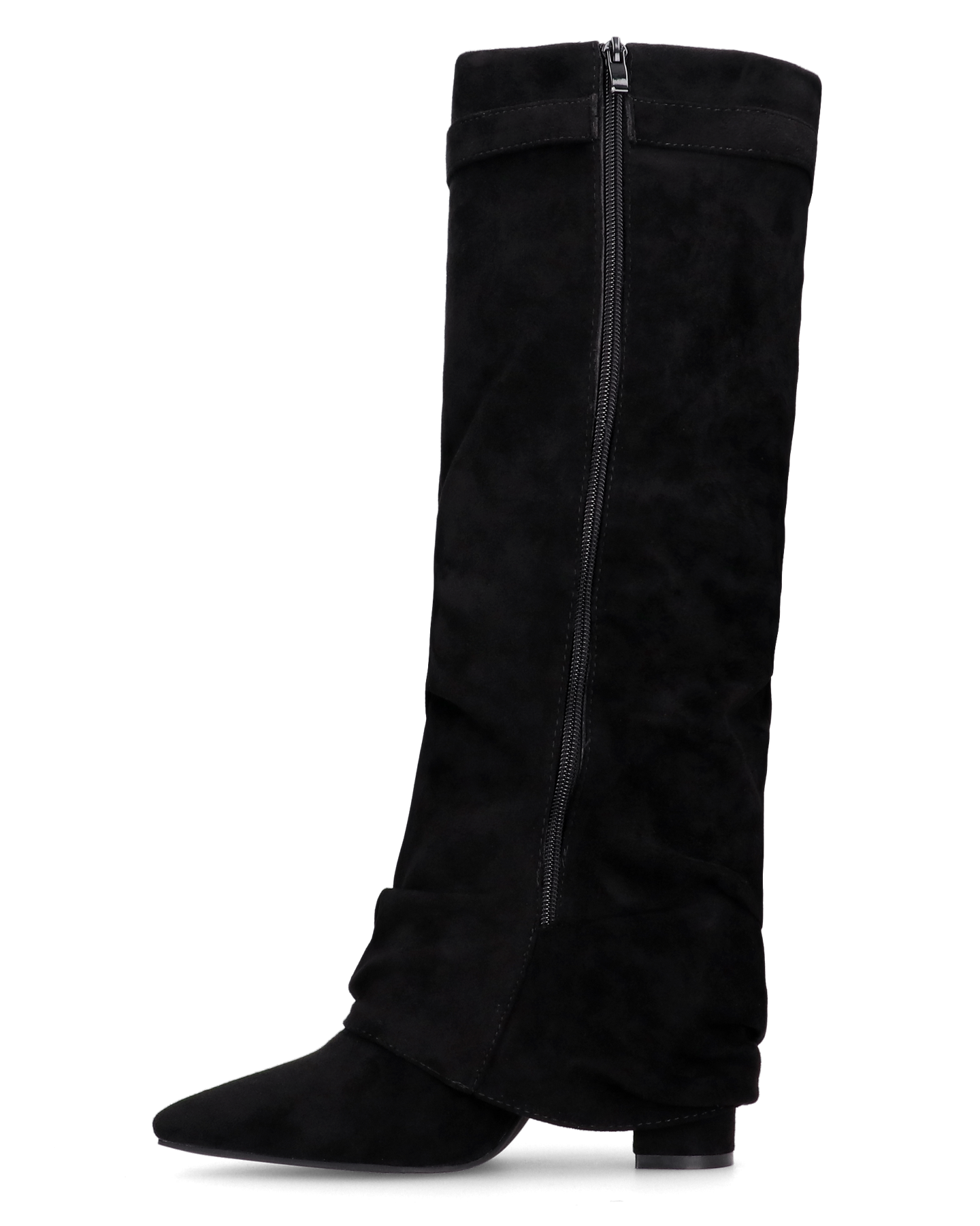 ELLENI - stivali in camoscio nero con risvolto e zip laterale