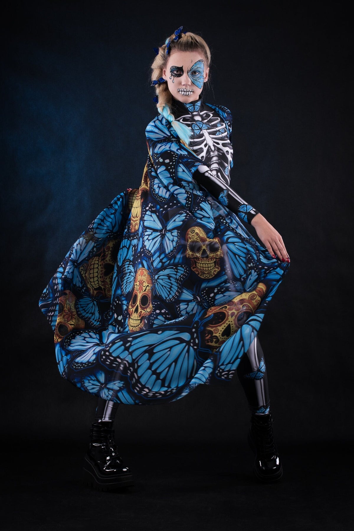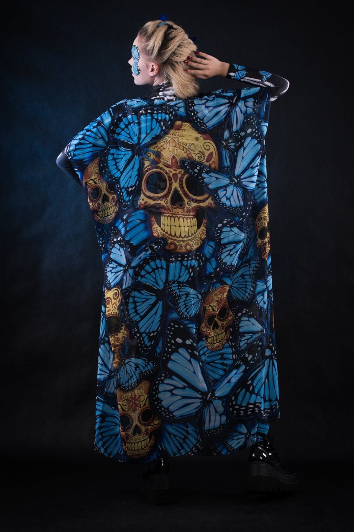 Blue Monarchy Butterflies Sheer Printed Halloween Kimono