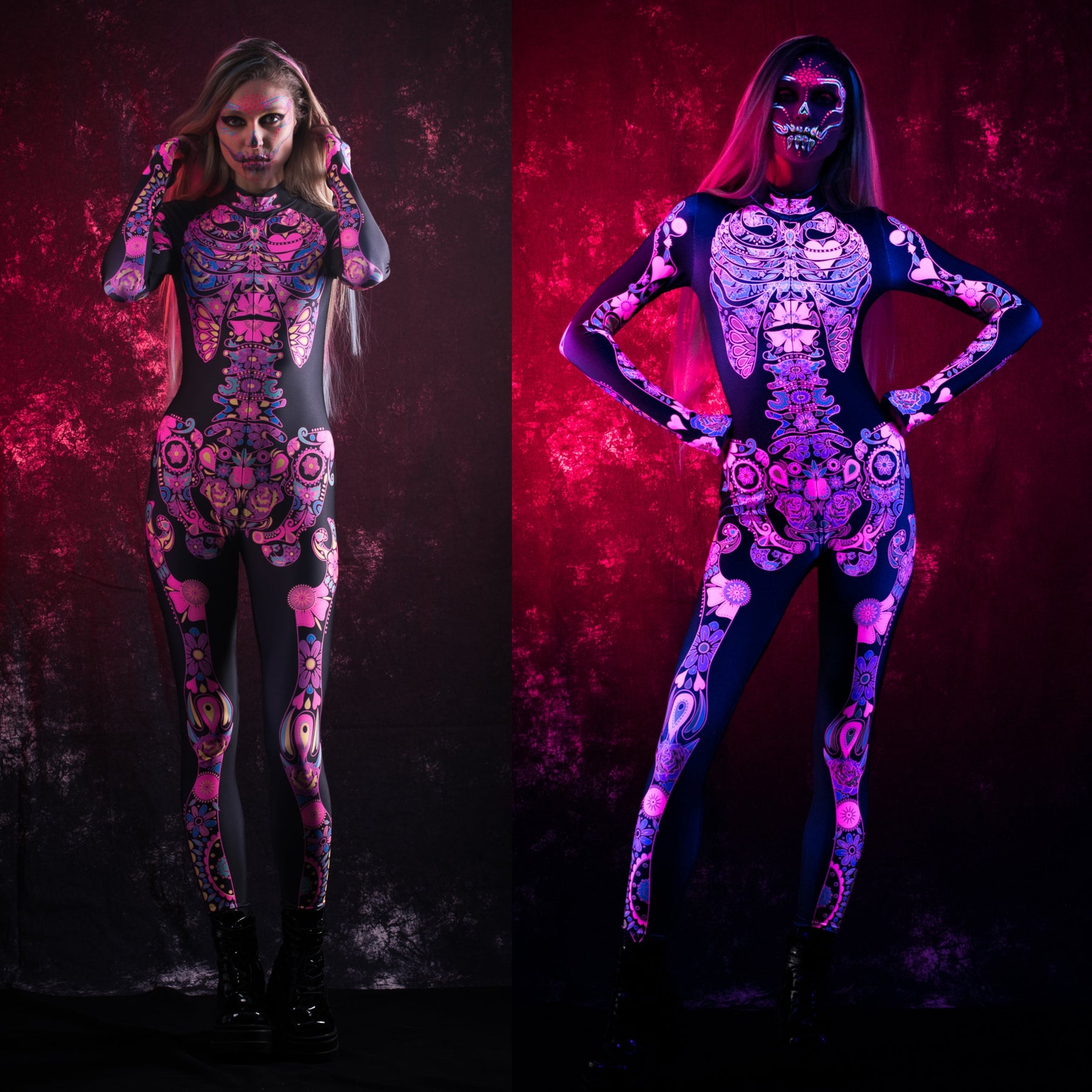 Pink LOS MUERTOS SKELETON Costume for Women - UV Reactive
