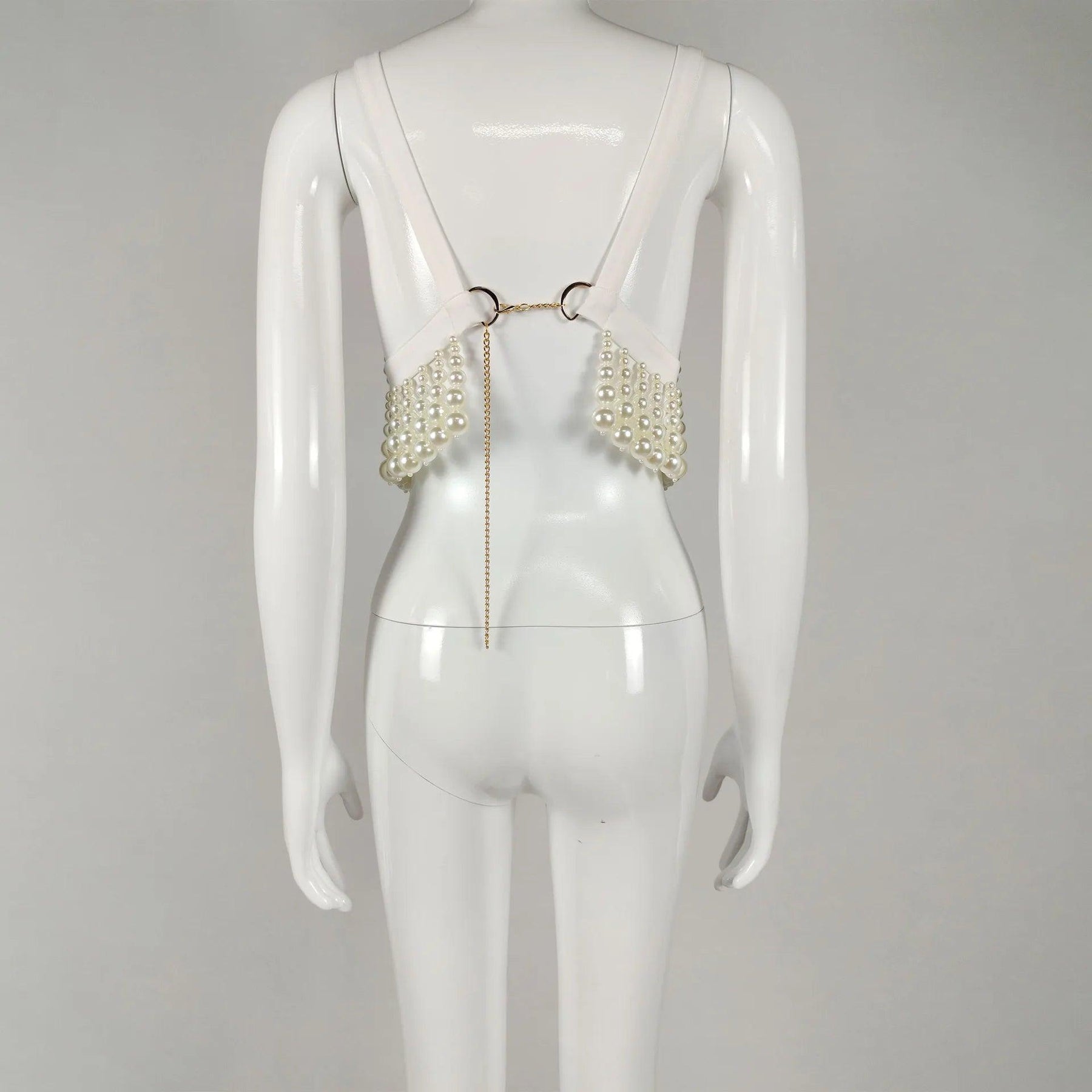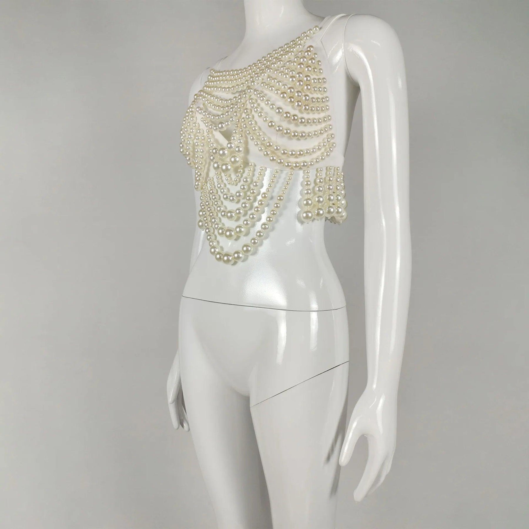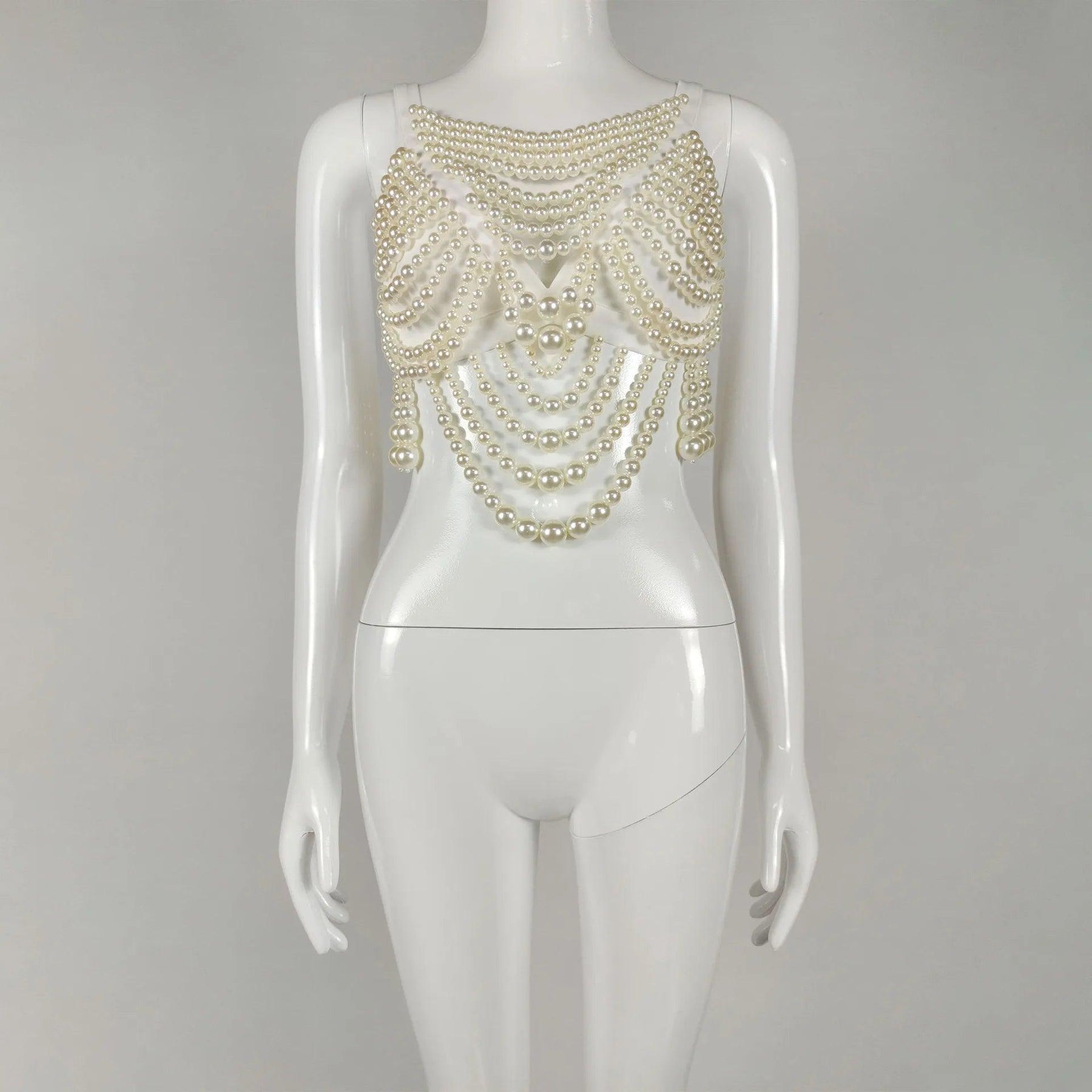Sleeveless Full Pearl Beading Top - Celestial Couture