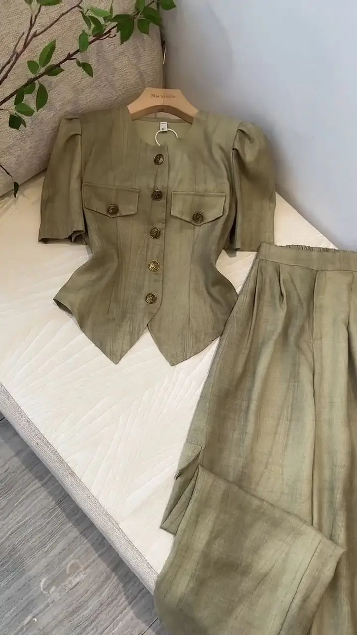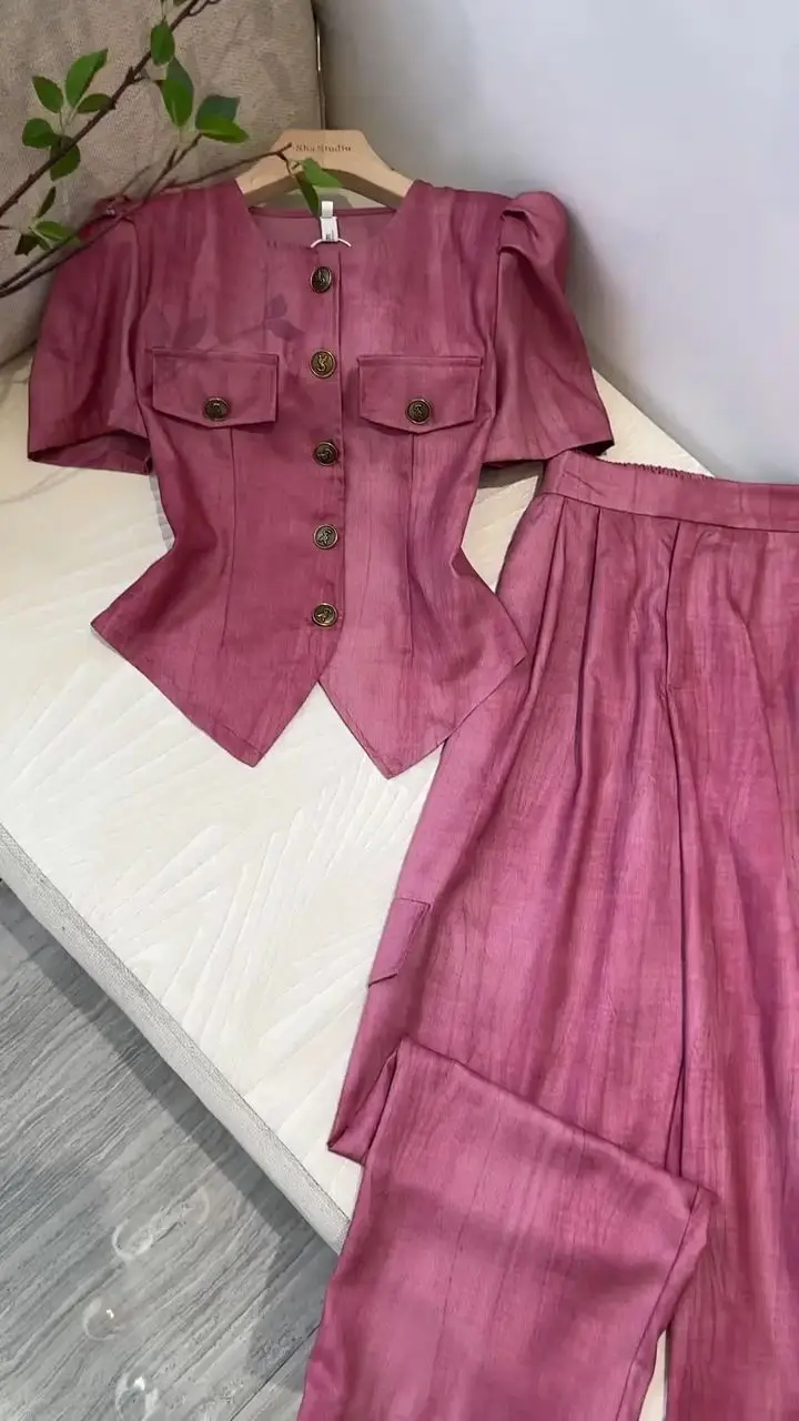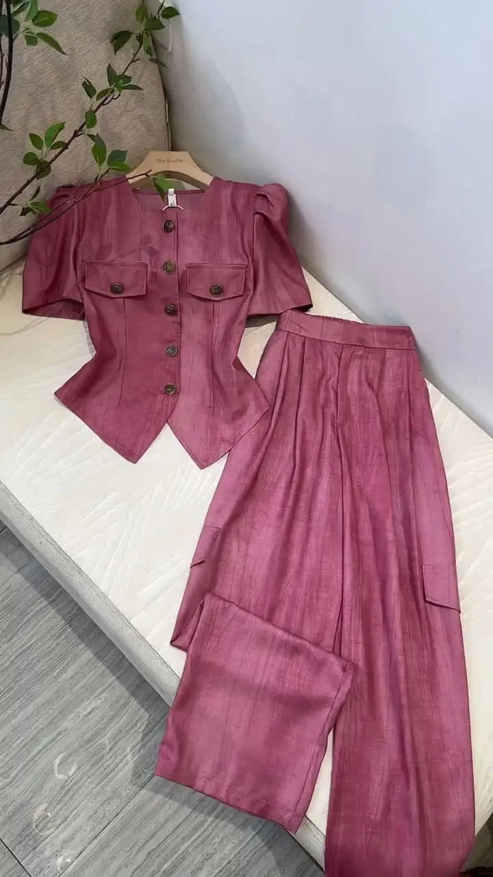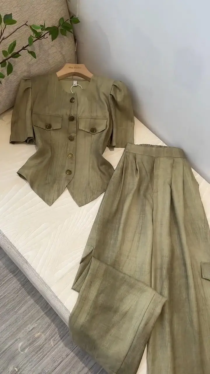 Make a statement with the "Irregular Bubble Sleeve Suit." This casual two-piece set features a stylish bubble sleeve cardigan and wide-leg pants, perfect for the modern socialite
