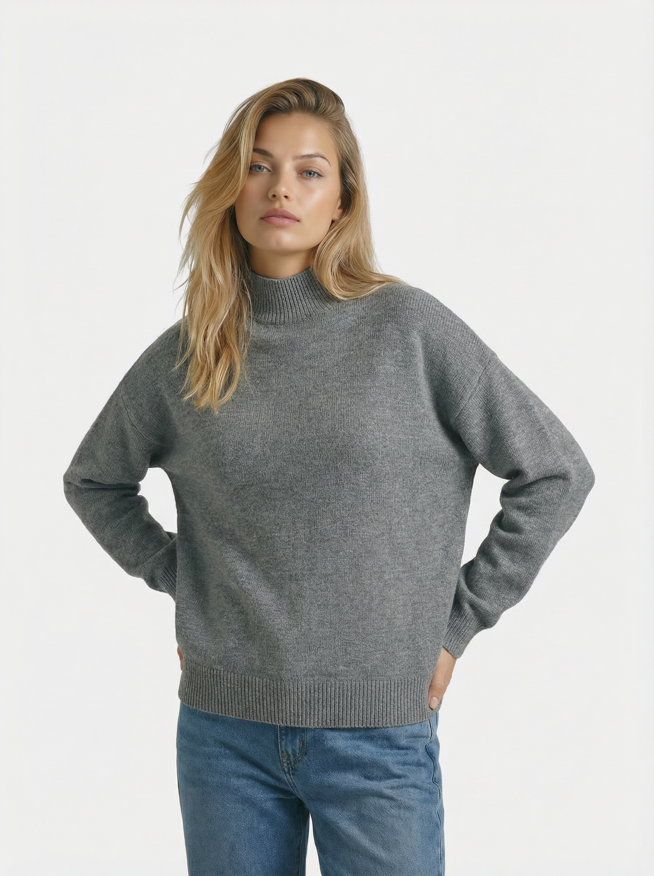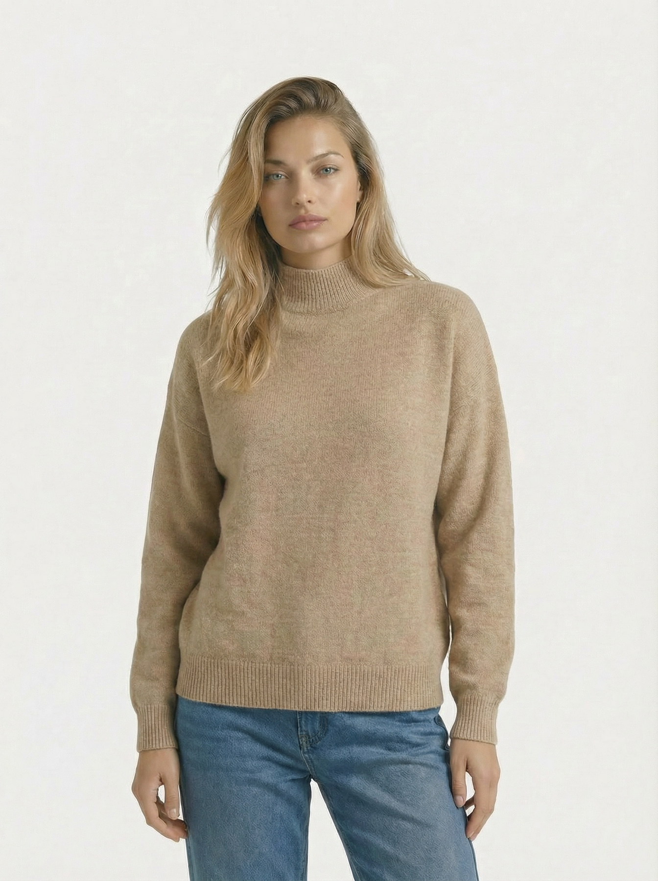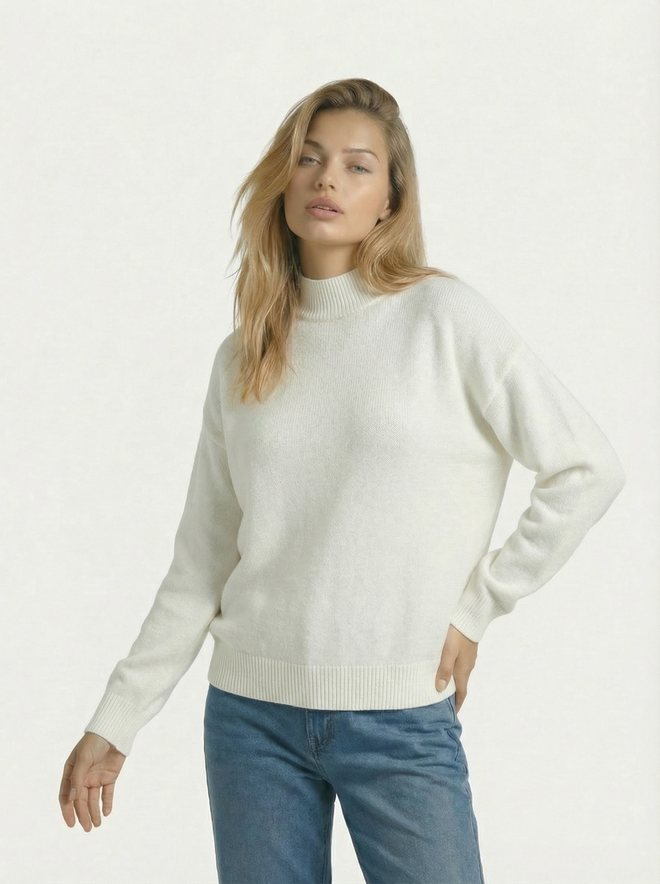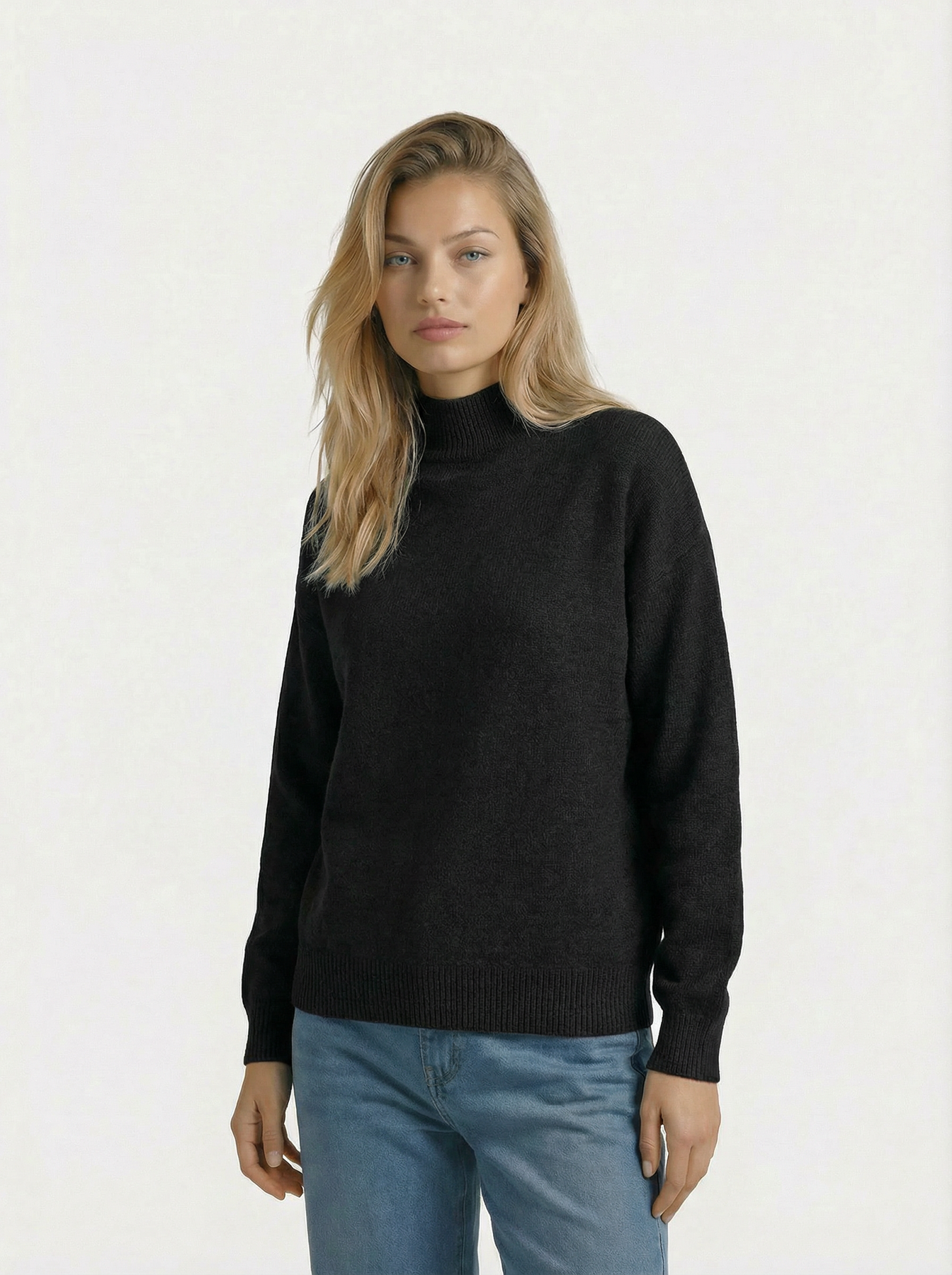 Design: Half high collar pullover with a relaxed, loose knit silhouette for a timeless and refined autumn winter look.